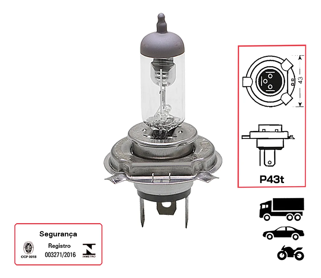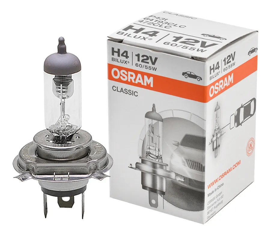 LAMPADA H4 FAROL 12V 60/55W GM, FIAT, FORD, VW MULTIMARCAS OSRAM ( LAMPADA FAROL ALTO E BAIXA )
