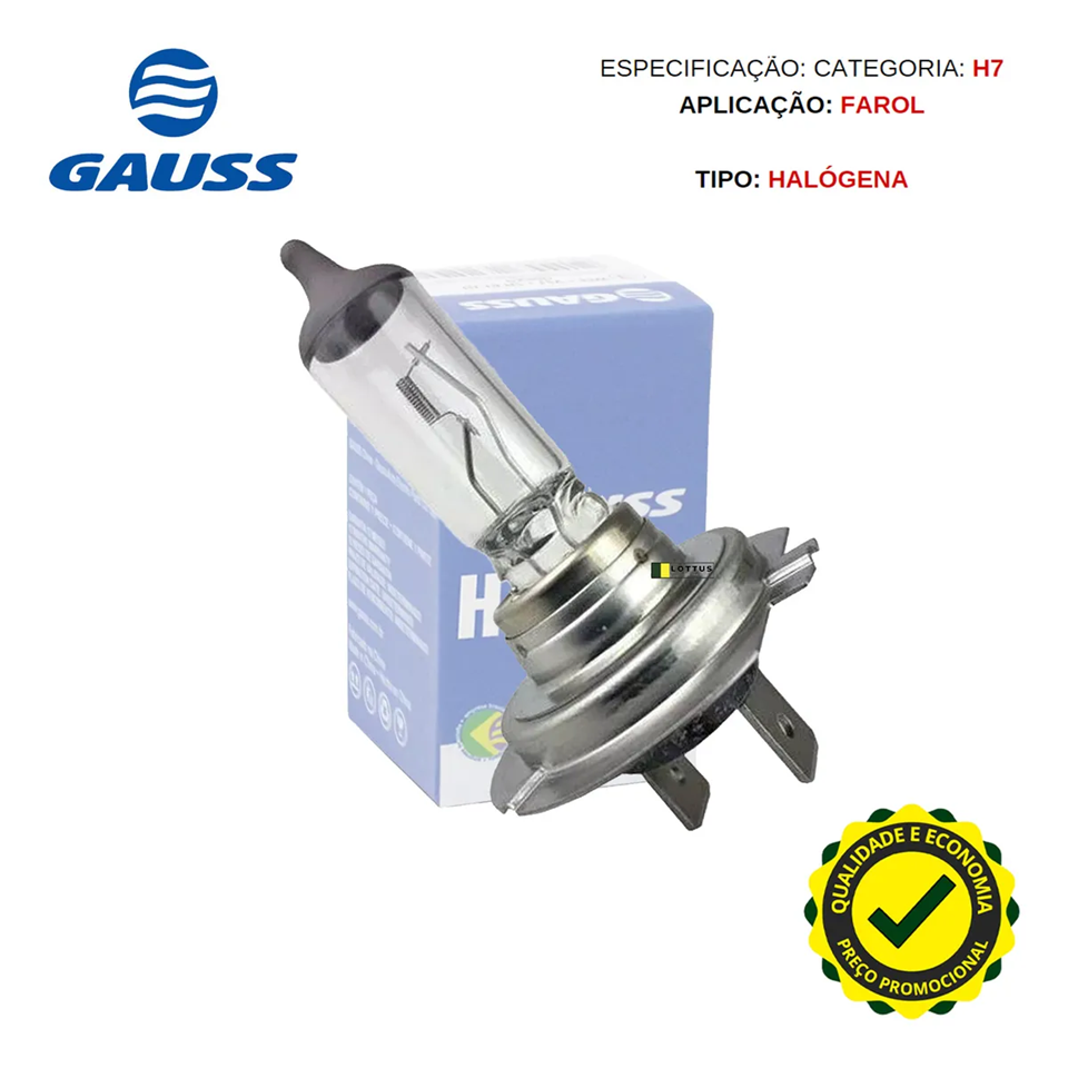 LAMPADA H7 FAROL BAIXO 12V-55W GM, FIAT, FORD, VW MULTIMARCAS GAUSS